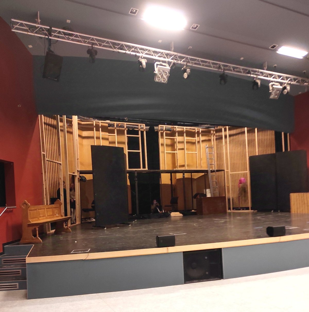 Þegar ritar leit við í Urðarbrunni fyrir skömmu, var verið að gera grind að leikmynd fyrir ,,Ljóska í gegn" - söngleikinn sem leikfélagið Verðandi frumsýnir þann 11.mars á sérstakri nemendasýninu. Lofað er miklu fjöri, mikilli músik og almennri gleði.