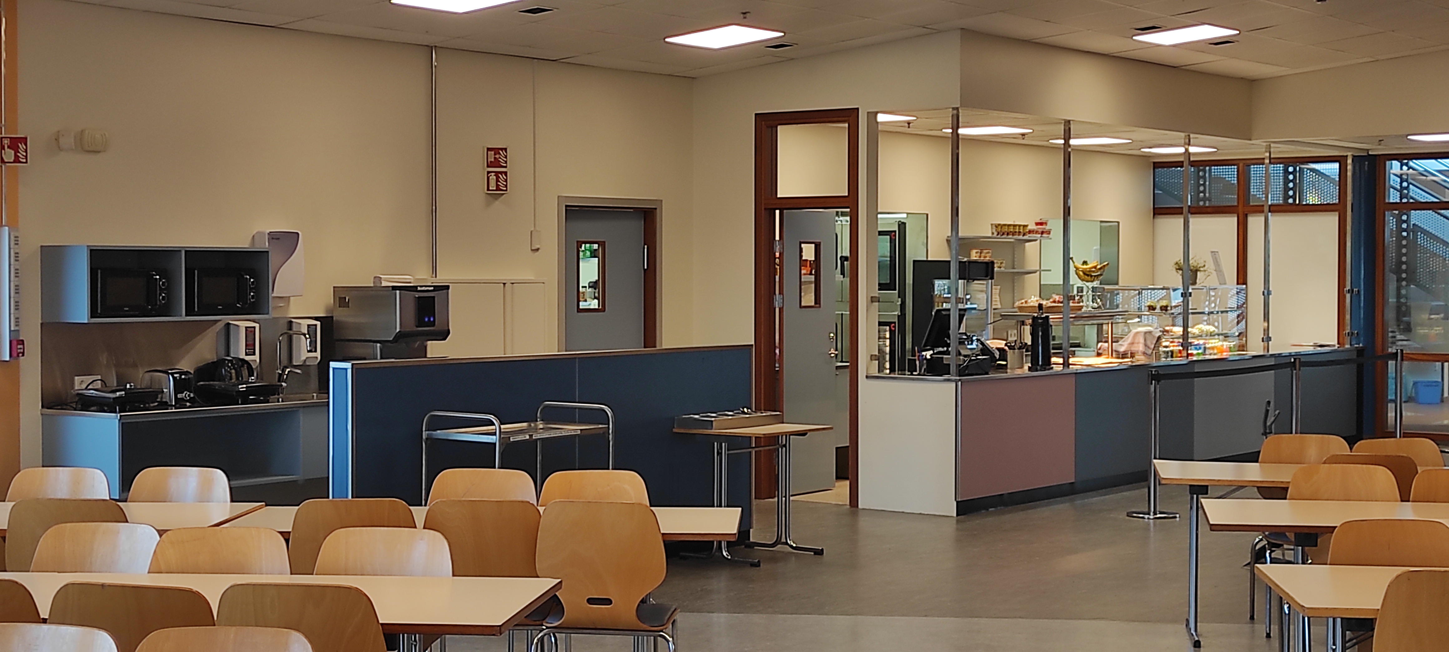 Fyrst ber að nefna aðstöðu í matsölu nemenda, en þar þurfa á hverjum degi nokkur hundruð nemendur að fá næringu á rúmlega hálfri klukkustund. Það er meira en að segja það.